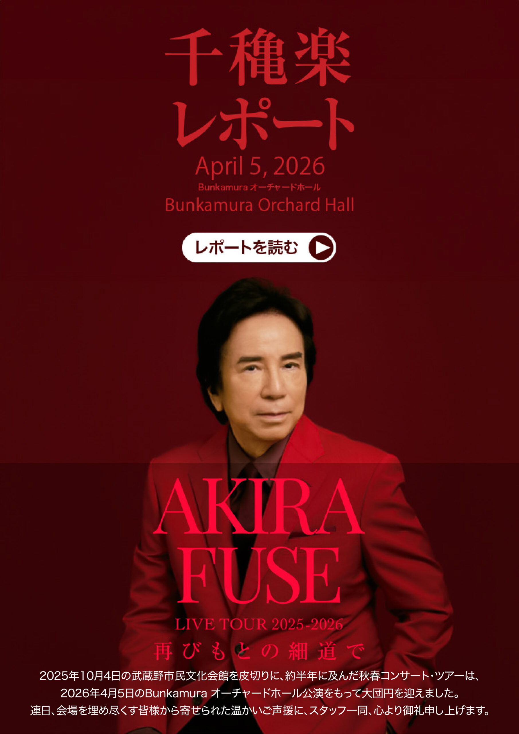 ツアーファイナル・オーチャード千穐楽公演のレポートを公開しました。 2026年4月5日。東京、渋谷。 さくら坂の桜は満 […]